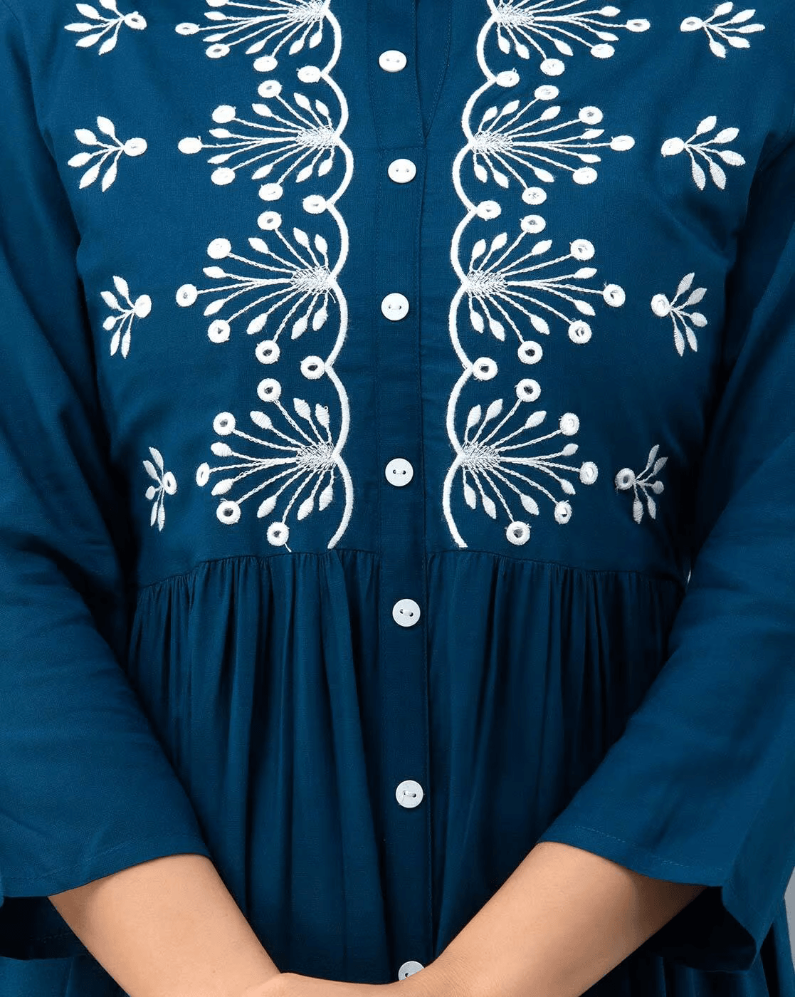 Embroidery Round Neck Flared Kurta.