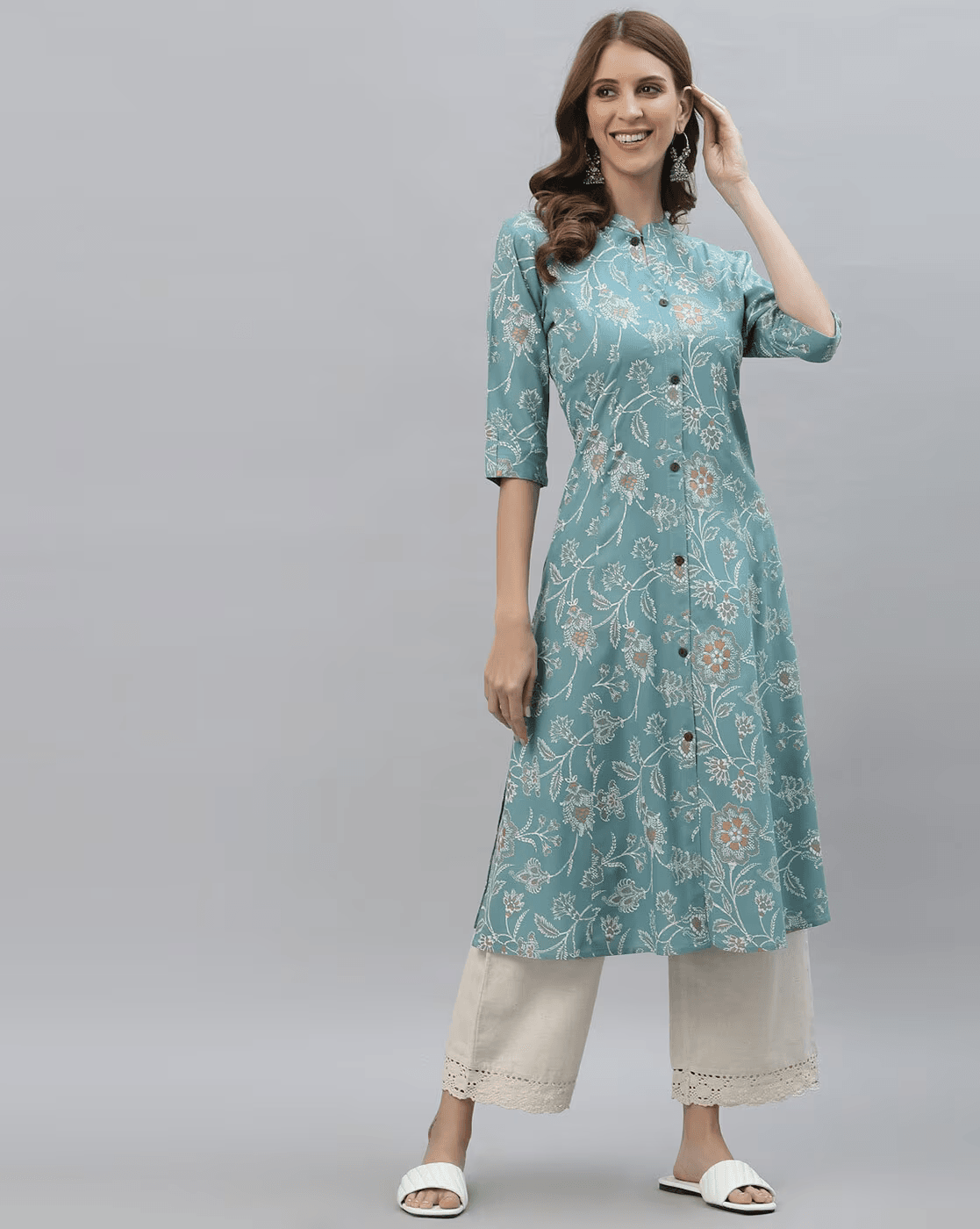 Floral Print A-line Kurta.