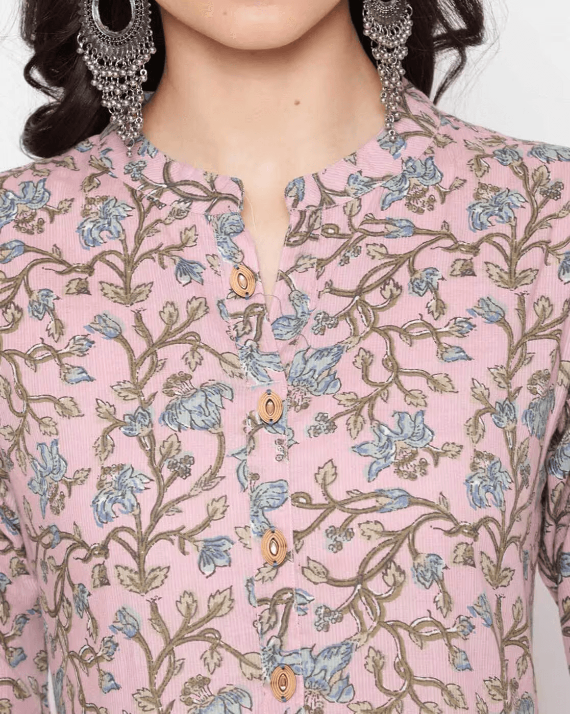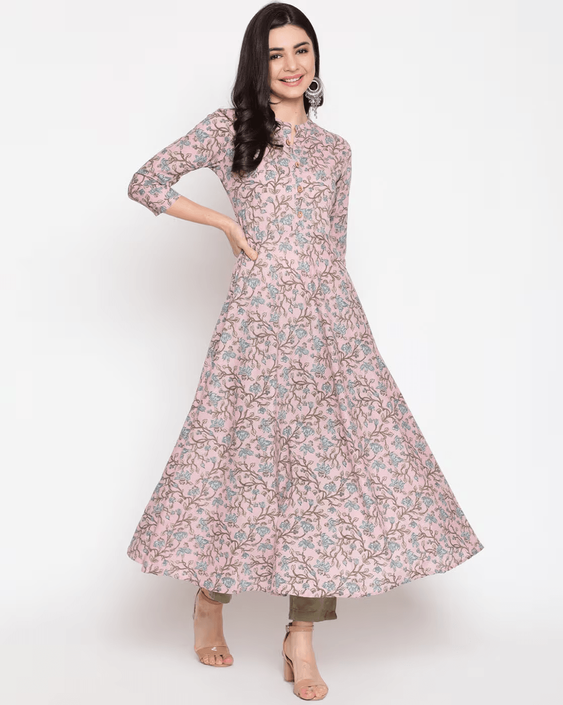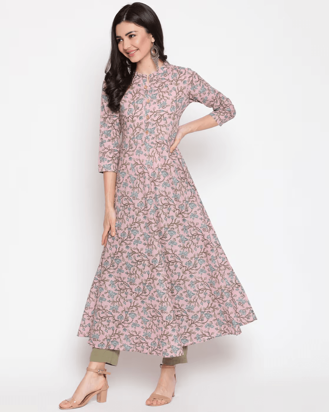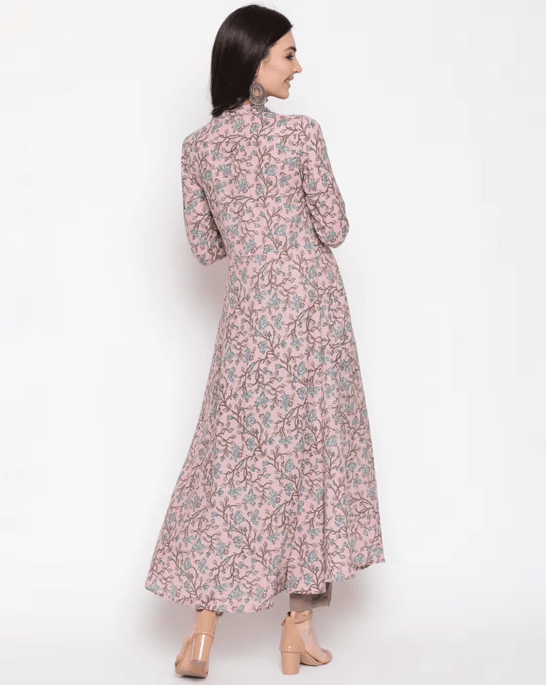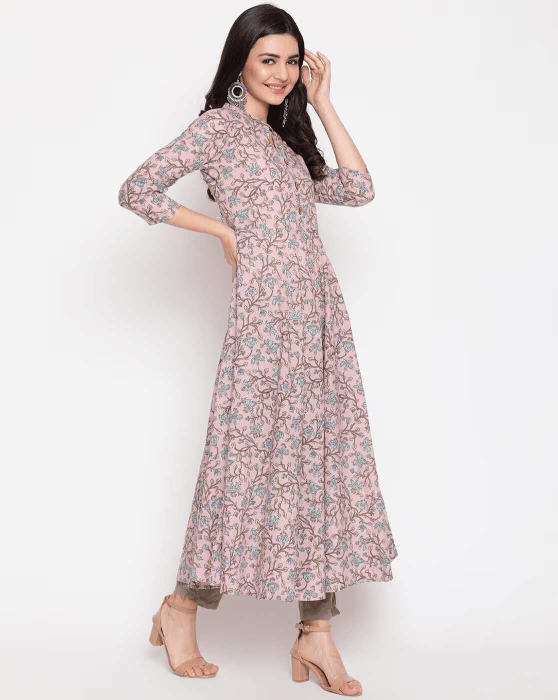 Printed Flared Kurta with Mandarin Collar.