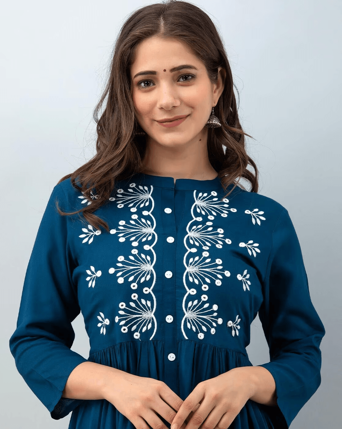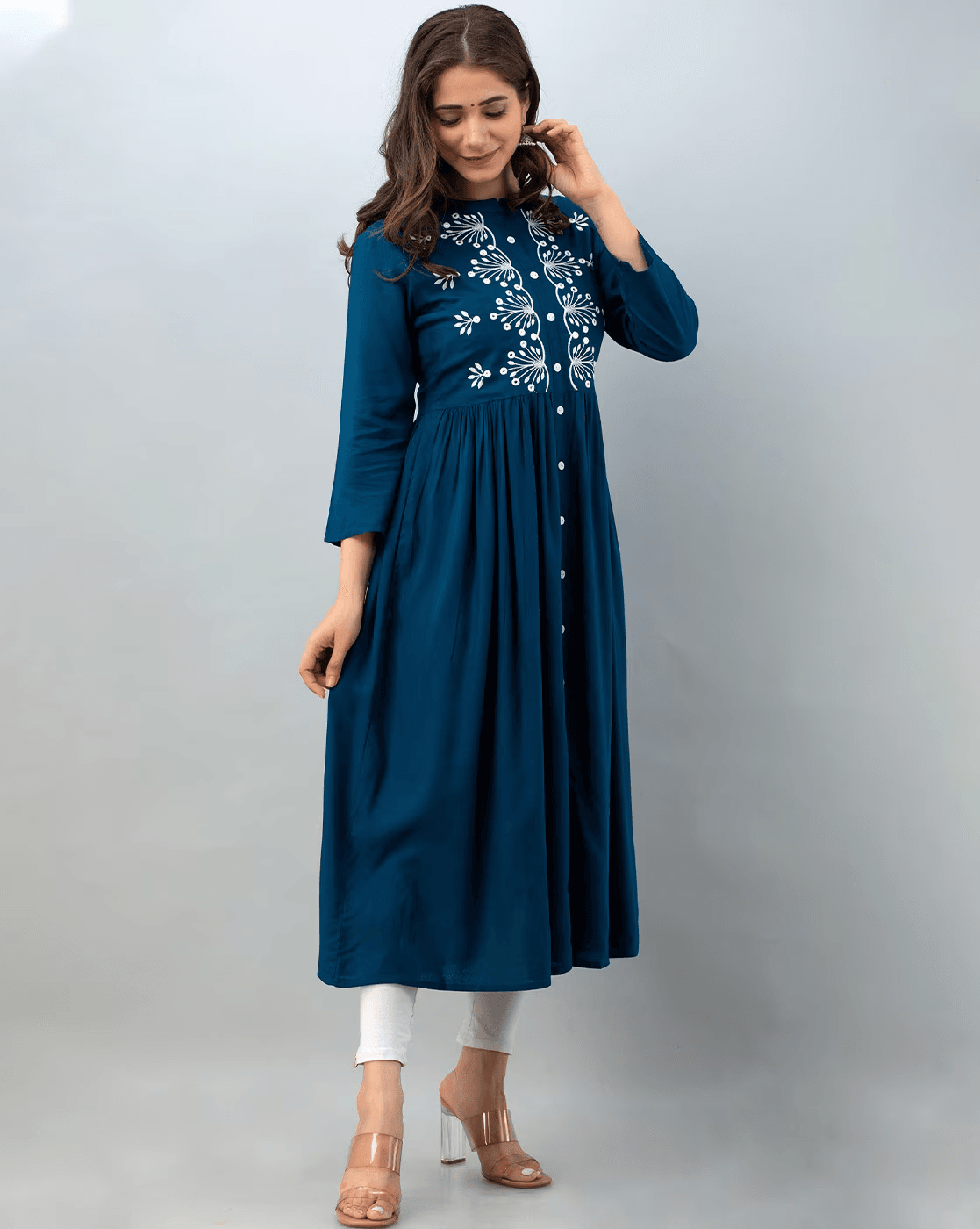 Embroidery Round Neck Flared Kurta.