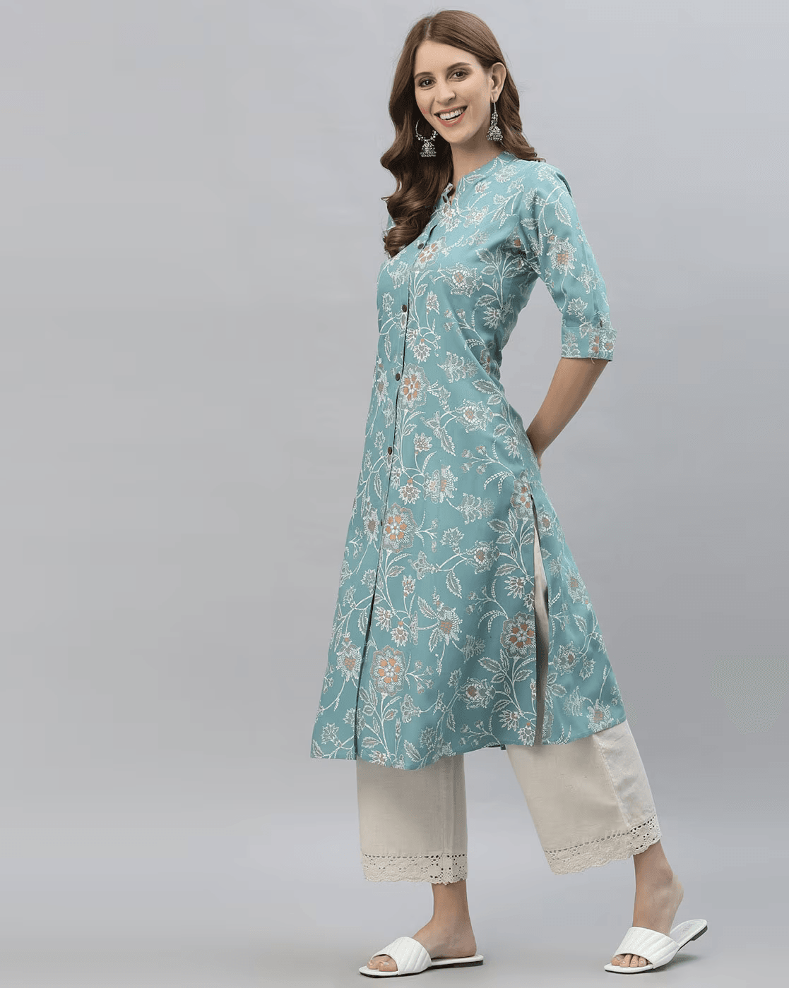 Floral Print A-line Kurta.