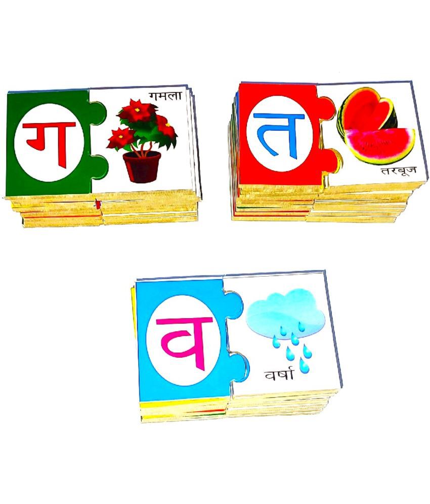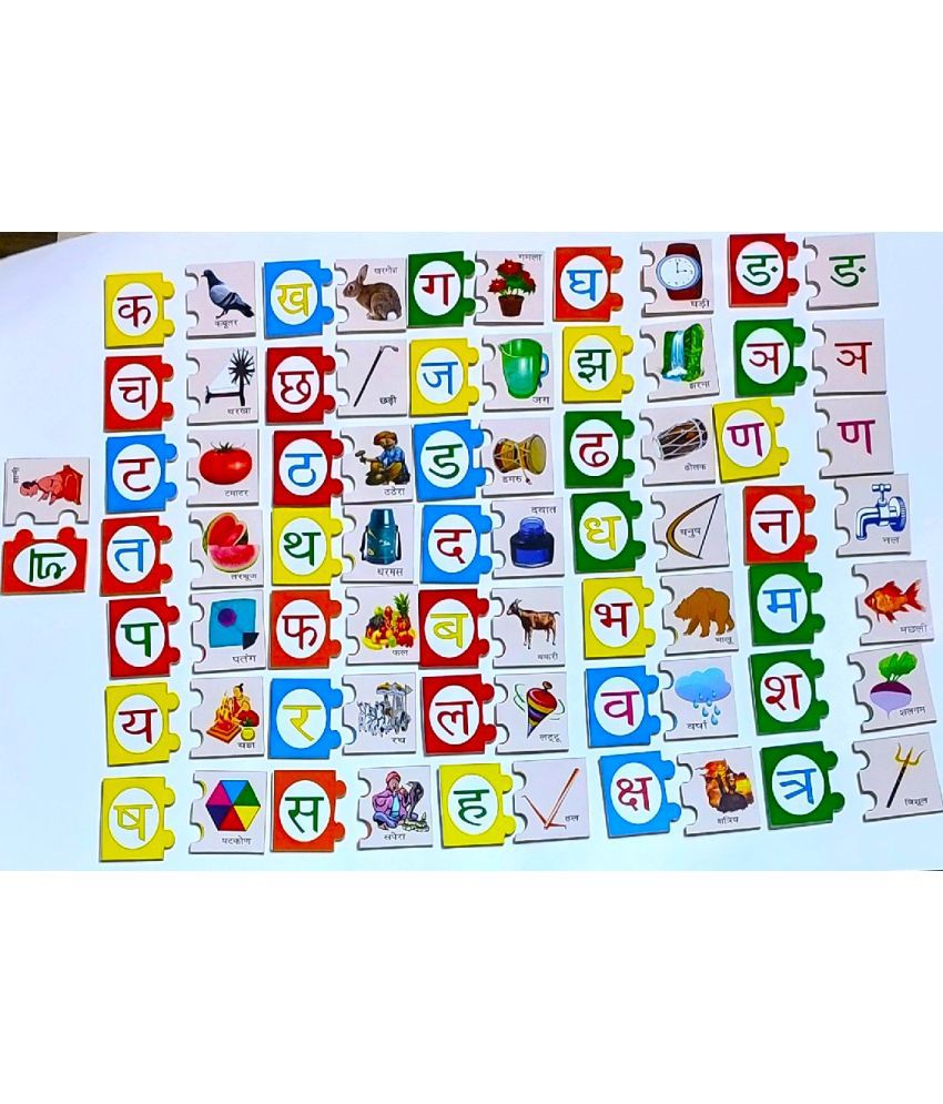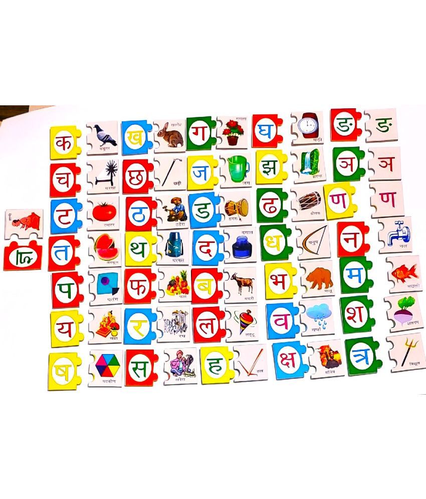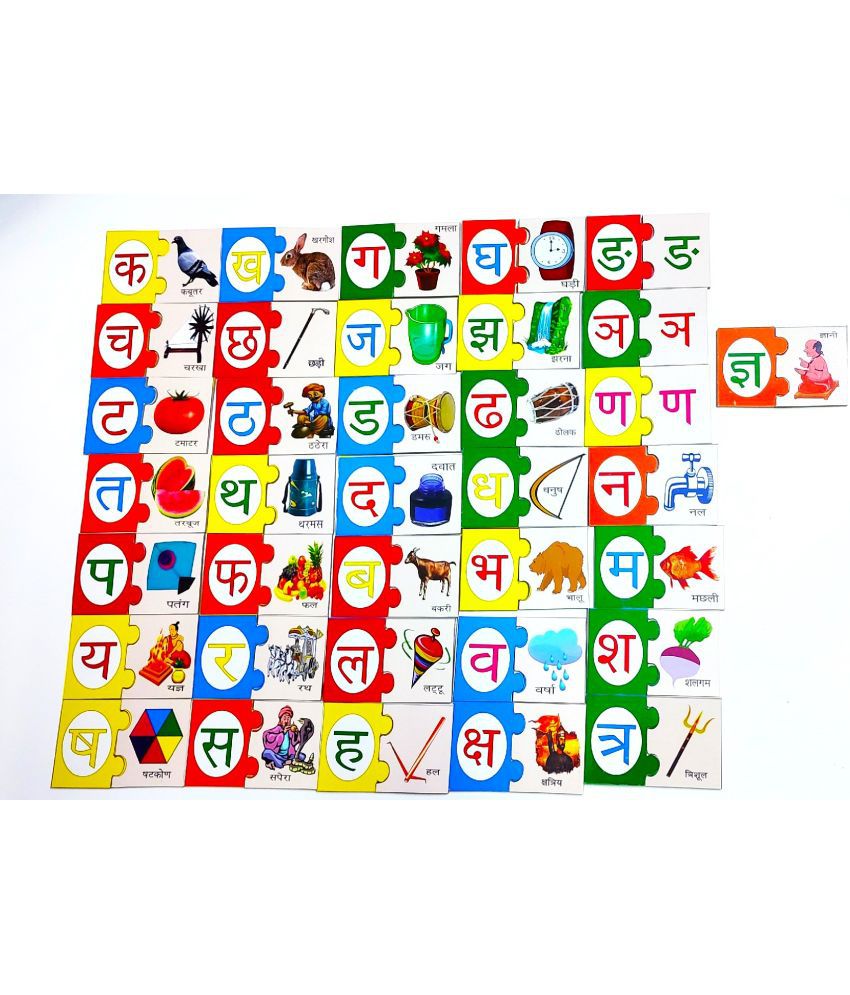 PETERS PENCE HINDI PUZZLE VARNAMALA CARDS WITH RELATED PICTURES 36 PCS SET FOR KIDS PRE PRIMARY EDUCATION.